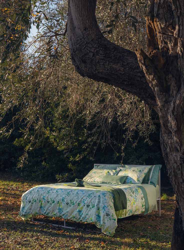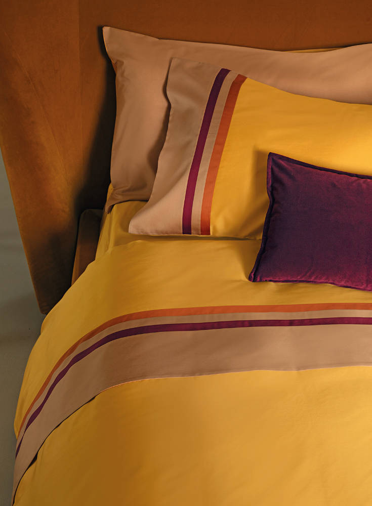 La collezione SENTIERI esplora il tema della tinta unita: il completo, impreziosito da una triplice bordatura a fasce tono su tono, indaga su colori raffinati, a tratti maschili. Il raso da 300 fili per pollice quadrato dona freschezza, comfort e morbidezza al prodotto. Il lenzuolo con angoli è in tinta unita, comprensivo di elastico sull'intero lato testa e lato piedi, che offre versatilità anche su misure di materasso più piccole. Una triplice bordatura decora la balza del lenzuolo e i volani delle federe.