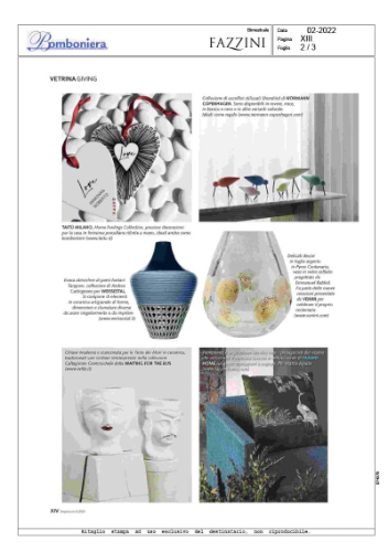 Scopri cosa raccontano di noi. In questa sezione abbiamo raccolto articoli, interviste e pubblicazioni che parlano del mondo Fazzini: collezioni, progetti e visione creativa attraverso lo sguardo della stampa nazionale e internazionale.
